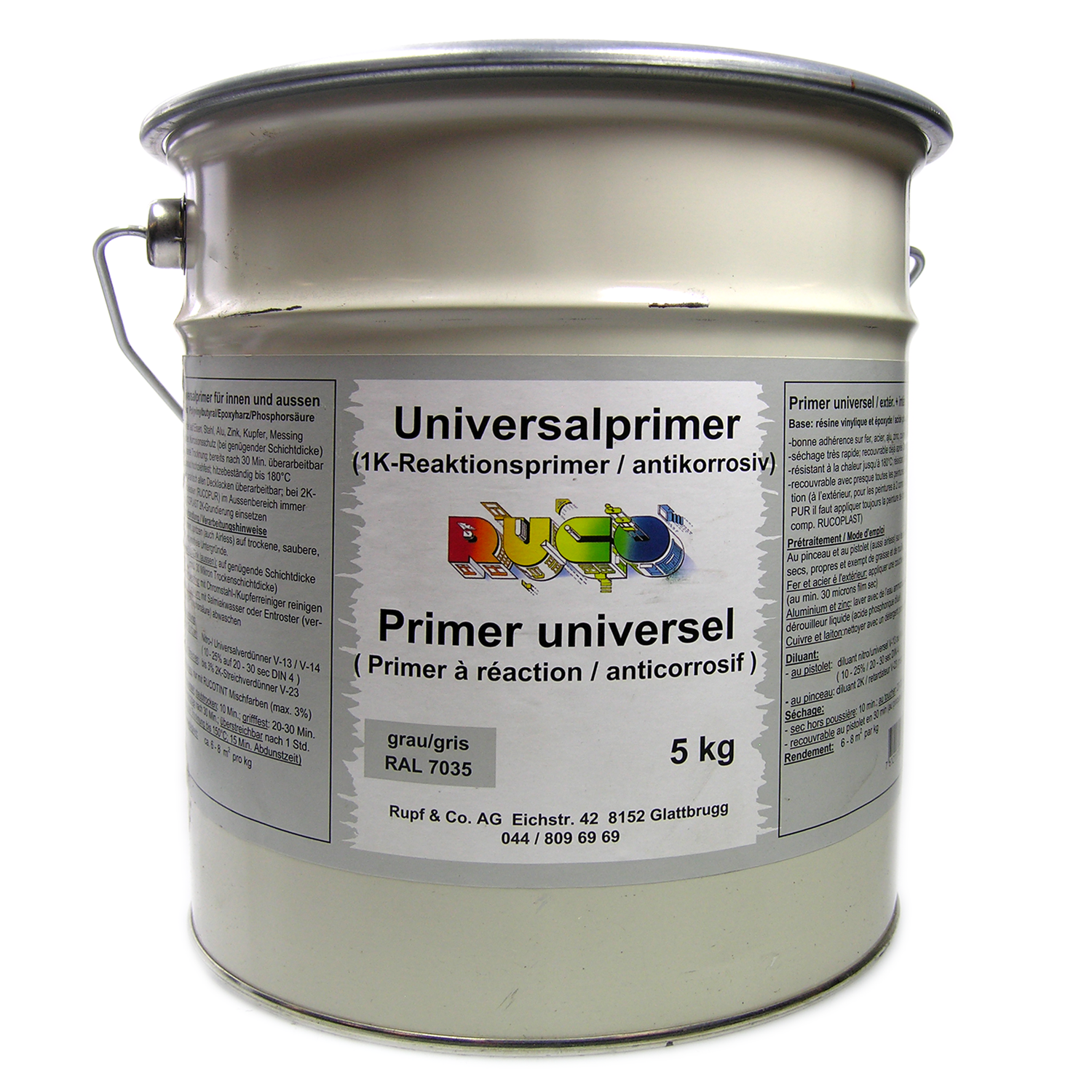 Lufttrocknender, blei- und chromatfreier Einkomponenten-Reaktionsprimer mit universeller Verwendbarkeit auf Metallen (auch Aluminium, Zink, Kupfer etc. ) im Innen- und Aussenbereich. Als Haftvermittler oder vollwertige Rostschutzgrundierung einsetzbar.