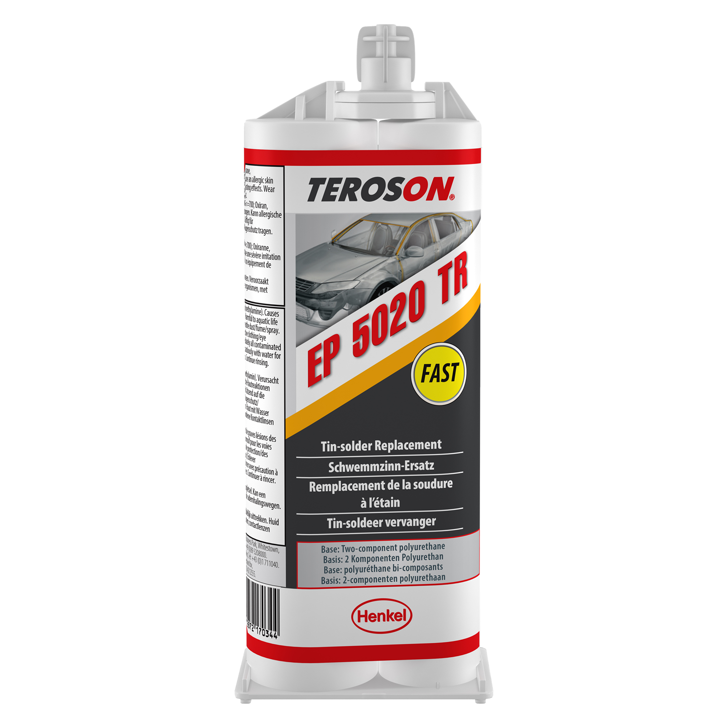 TEROSON EP 5020 TR ist eine lösemittelmittelfreie 2 Komponenten Ausgleichsmasse basierend auf Epoxidharz mit hoher Festigkeit und niedriger Dichte. Die Reaktion kann durch Erwärmen der beiden Komponenten beschleunigt werden. TEROSON EP 5020 TR wurde speziell für die Carrosserie-Instandsetzung zur Wiederherstellung von Oberflächen entwickelt und ersetzt das traditionelle Verzinnen. Es ist frei von Isocyanaten, Silikon und Blei. Das Produkt schrumpft nicht und ist hervorragend schleifbar. TEROSON EP 5020 TR fällt nicht ein und lässt sich sehr gut in Form schleifen. TEROSON EP 5020 TR ist bei 23°C nach ~2,5 Stunden schleifbar und kann weiterverarbeitet werden.