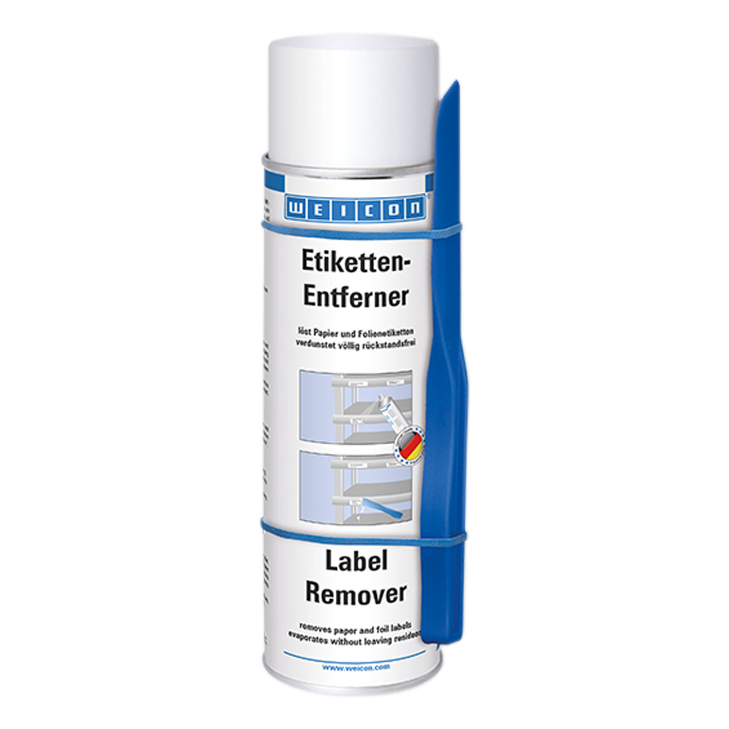 Entfernt Papieretiketten und Rückstände von Klebstoffen auf Acrylat- und Kautschukbasis von vielen Oberflächen wie z. B. Glas, Metall, Holz, Folien und Kunststoffen.