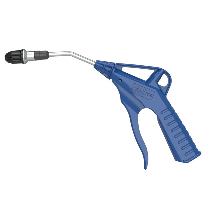 90mm-Rohr, Schalldämpferdüse schwarz, nicht abnehmbar 83,5 dB(A), 398l/min, max. Arbeitsdruck 16 bar. Sicherheits-Blaspistole mit einer Baumusterprüfbescheinigung (Suva) nach dem Bundesgesetz über die Produktesicherheit.