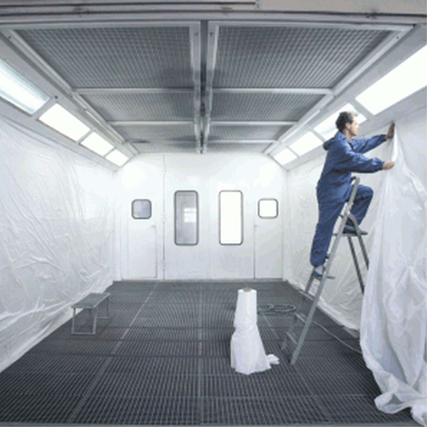 Farbhaftende Folie zum Schutz der Kabinenwände vor Farb- und Lacknebel.