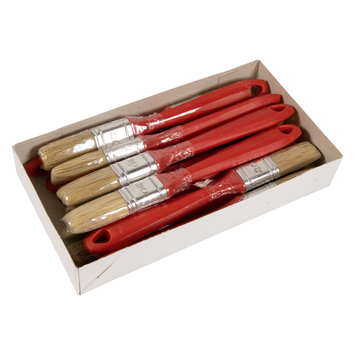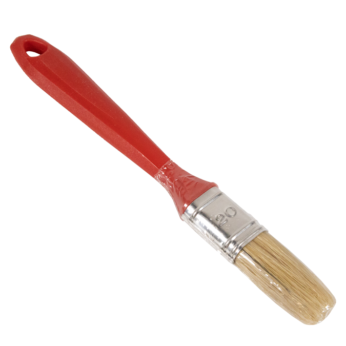 Harzpinsel mit rotem, lösemittelfestem Kunststoff-Stiel. Flache Form, zum Lackieren und Laminieren.