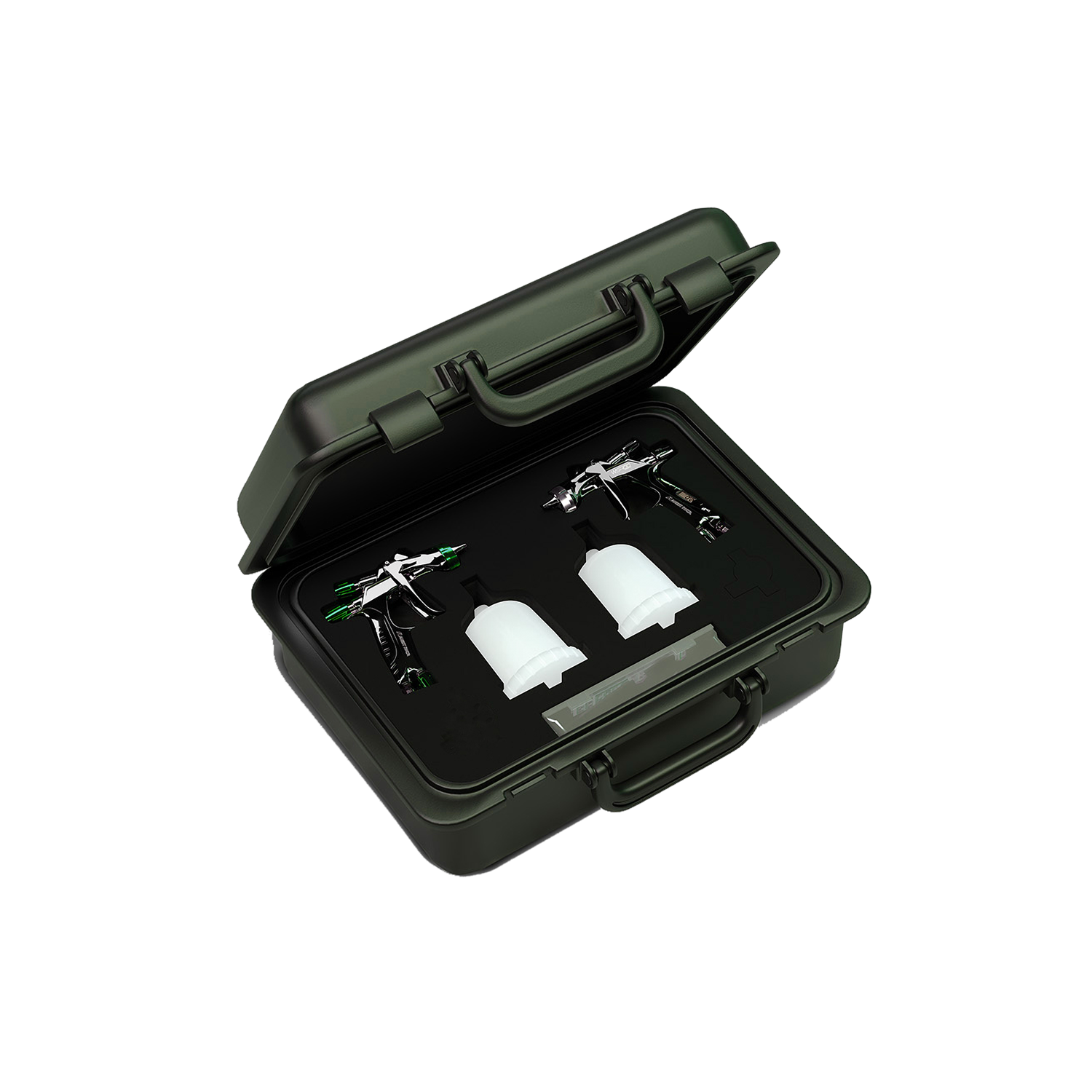 Das Superior Set enthält zwei next generation Lackierpistolen der SERIES 2 mit digitalem Manometer, zwei 600ml Fliessbecher, Reinigungsbürsten und Pistolenschlüssel sowie Zubehör für das digitale Manometer. Geliefert wird es in einem hochwertigen Kunststoffkoffer. Set: 1 x WS-400 CLEAR S2 1.3 + 1 x LS400 1.3 ETS