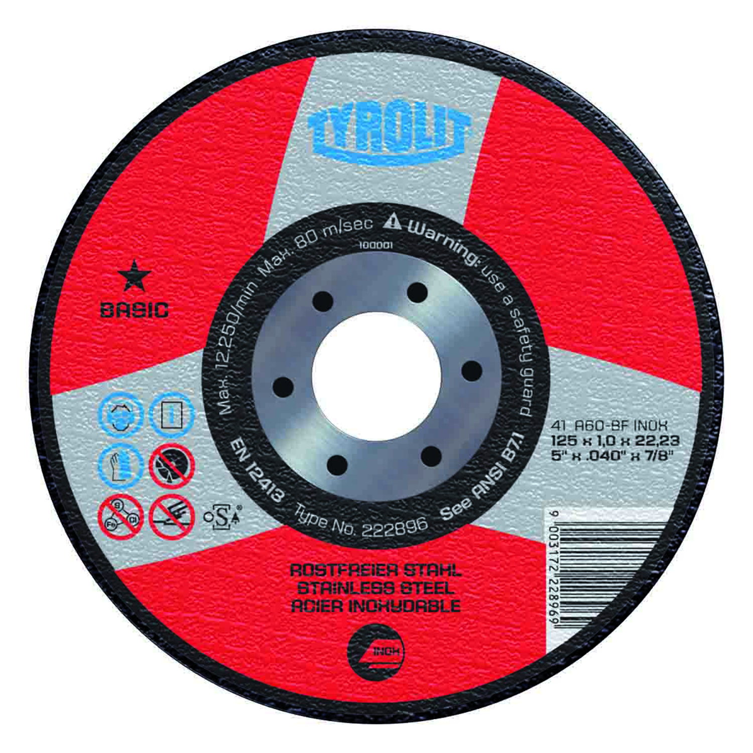 Artikelnummer CSM4162 Bezeichnung Trennscheibe Basic gerade Breite Dimension 125x1x22.2mm Durchmesser Farbe Gewinde Hersteller-Nr 0018.6922 Aufnahme Körnung A60-BF INOX Lochdurchmesser Lochung Marke Tyrolit ----Attr06---- Spezielles Stk. 25 Typ basic U/min Verfügbarkeit