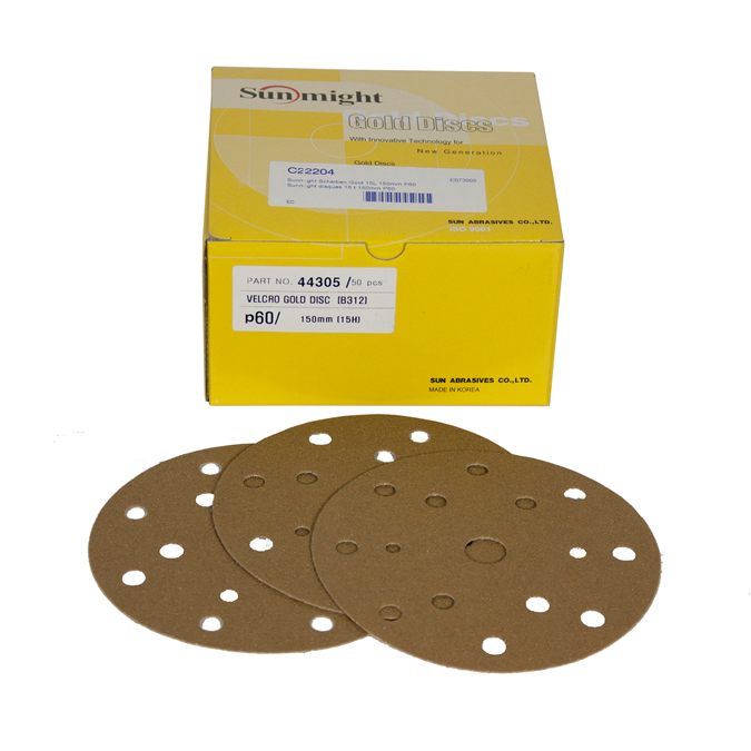 Artikelnummer C22204 Bezeichnung Schleifscheibe gold Durchmesser 150mm Hersteller-Nr 44305 Körnung 60 Lochung 15 Marke Sunmight ----Attr06---- Stk. 50 Typ gold/or Verfügbarkeit