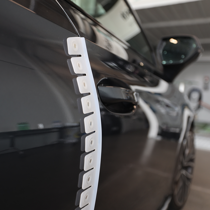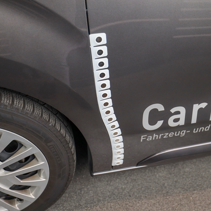 Der magnetische Schleifkantenschutz schütz die angrenzenden Teile während dem Schleifen. Mit dem flexiblen Schutz kann die Form des zu schützenden Teils nachgestellt werden. Auch zum befestigen von Folien und Abdeckpapier geeignet. Set enthält 4 Strips mit je 16 Magneten.