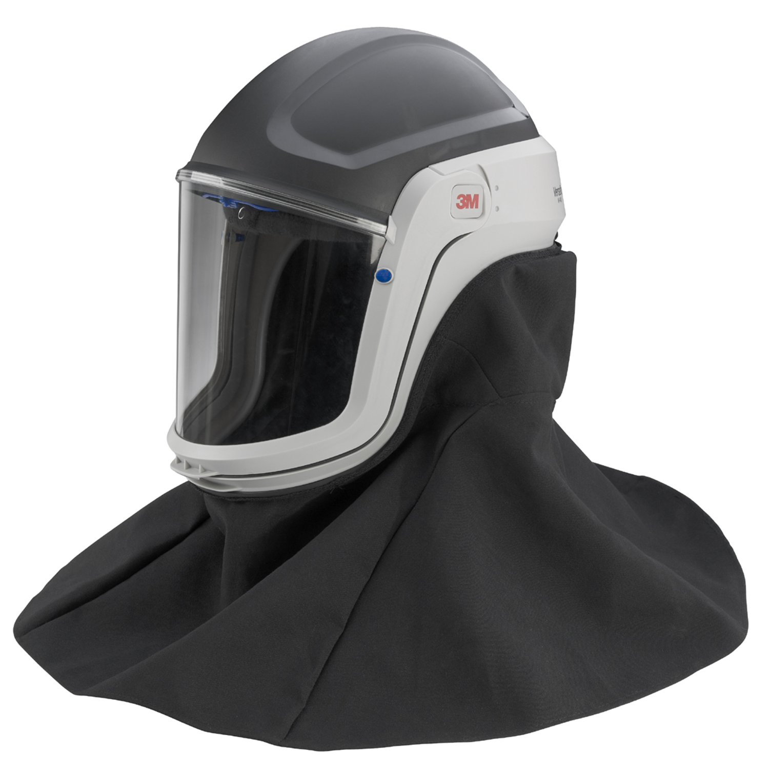 Schutzhelm mit strapazierfähiger Hals- und Schulterabdeckung und Polycarbonat Visier, klar. -Kopfteil mit zusätzlichem Kinnschutz und Cape zum Schutz von Hals-, Brust und Schulterbereich - Geschlossener Helm für geprüften Kopfschutz nach EN397 - Erfüllt die Norm EN12941, Schutzstufe TH3, in Kombination mit der Jupiter™ Gebläseeinheit