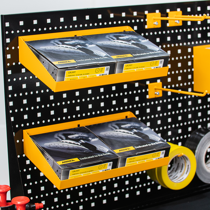 Der Mirka Smart Cart IV ermöglicht ein einfaches und effizientes Arbeiten in der Werkstatt. Er bietet einen strukturierten und ergonomischen Arbeitsplatz, an dem alle Maschinen und Materialien griffbereit sind. Kit beinhaltet: 1 Pack GALAXY 150mm Grip Multifit P120 1 Pack GALAXY 150mm Grip Multifit P220 1 Pack GALAXY 150mm Grip Multifit P320 1 Pack GALAXY 150mm Grip Multifit P500 1 Pack GALAXY 150mm Grip Multifit P800 1 Stk. Net Interface 150mm 4mm 1 Pack MIRLON TOTAL 115x230mm XF P800 1 Pack ABRANET ACE 70x198mm Grip P120 1 Pack ABRANET ACE 70x198mm Grip P240 1 Pack ABRANET ACE 70x198mm Grip P320 1 Stk. Handblock Kit 70x198mm Grip 40L Gelb 1 Stk. Modular Trolley Kit 5