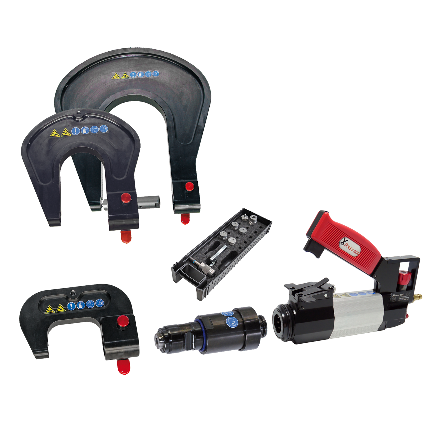 Hydro-pneumatisches System für Nieten besteht aus: 1 x 700050 PowerPack | XPress 800 1 x 700060 SSC 35/25 Kurzhubzylinder 1 x 700070 C-Bügel GC 80/40 1 x 700071 C-Bügel GC 80/120 1 x 700072 C-Bügel GC 140/240 1 x 700200 Tool Box RS-03 | BMW 1 x 881341 Handgriff für Fixmagnete & C-Bügel | rot 1 x 700801 Box für Nieten/Mundstücke/Kleinteile | leer 1 x Koffer für XPress 800 | Basic & Standard Set 1 x Bedienungsanleitung
