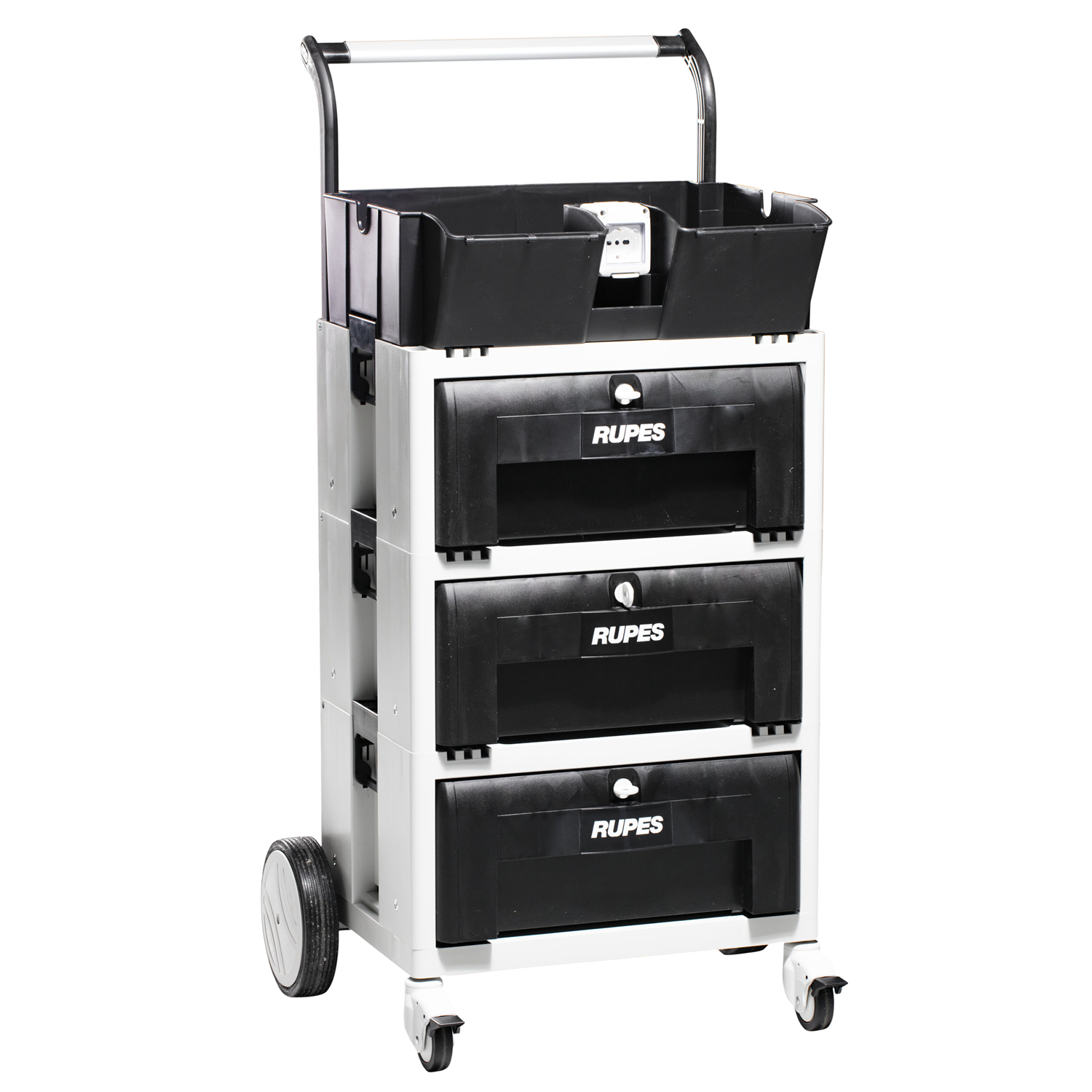 Modulares Transport - und Lagersystem (montiert) - Sehr stabile Ausführung - 3 Schubladen mit Drehverschluss - Inkl. Poliermodul mit Steckdose vorne und 5 Meter Strom Anschlusskabel - OHNE INHALT