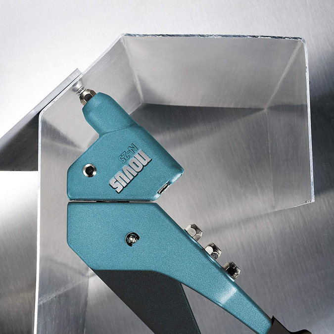 Die Novus Blindnietzange N-25 Vario ASC bietet maximale Flexibilität durch ihren um 360° drehbaren Kopf, der auch schwer zugängliche Stellen erreicht. Diese universelle Zange verarbeitet Aluminium-, Stahl- und Kupferniete und ist somit vielseitig einsetzbar. Die integrierte Rückholfeder ermöglicht eine einfache Einhand-Bedienung, wodurch die Arbeitseffizienz gesteigert wird. Zusätzlich sorgt die Griffverriegelung für eine sichere und kompakte Aufbewahrung nach dem Gebrauch.