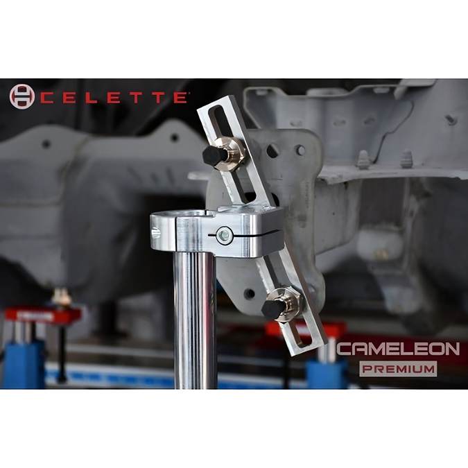 Cameleon ist eine anpassbare Lösung für Messungen und Reparaturen struktureller Schäden an beschädigten Fahrzeugen. Cameleon ist modular und skalierbar mit einem Set von Standard Bolzen, 10 verschiebbaren X und Y Platten und 10 anpassbaren Klemmen. Cameleon ist die perfekte Kombination zwischen dem System der spezifischen Klemmen und der Naja 3D Vermessung. Bei der Verwendung der Naja 3D Datenbank haben Sie die Möglichkeit ihre eigenen Klemmen zusammen zu stellen. Cameleon ist auf alle bestehenden Celette Werkzeuge anpassbar: Richtbänke, Richttürme, und Universal Kolben. Cameleon ist ein einzigartiges Werkzeug, welches für alle Fahrzeugarten eingesetzt werden kann.Der Cameleon Premium wird mit allem Zubehör geliefert. Dies ist ein eigenständiges Set für Benutzer, die beim ersten Mal alles richtig machen möchten. Mit 16 Gleitblöcken, zusätzlichen Steckdosen, Horizontal- und Multi-Winkelleuchten. Die Expertenlösung für die vordere und hintere Stossfängerbefestigung und Positionierung, die vordere McPherson-Strebenbefestigung, unabhängige Positionierung der Räder mit vier Rädern, Dämpfer hinten absorbieren, Wiege mit Winkel und hinteren Längslenkern mit Winkel. Zusätzlich besteht das Set aus zwei universellen Haltevorrichtungen, die zusätzliche Verankerungs- und Haltepositionen an den vertikalen Befestigungspunkten ermöglichen. Bestehend aus: CAM01.102 und CAM02.066