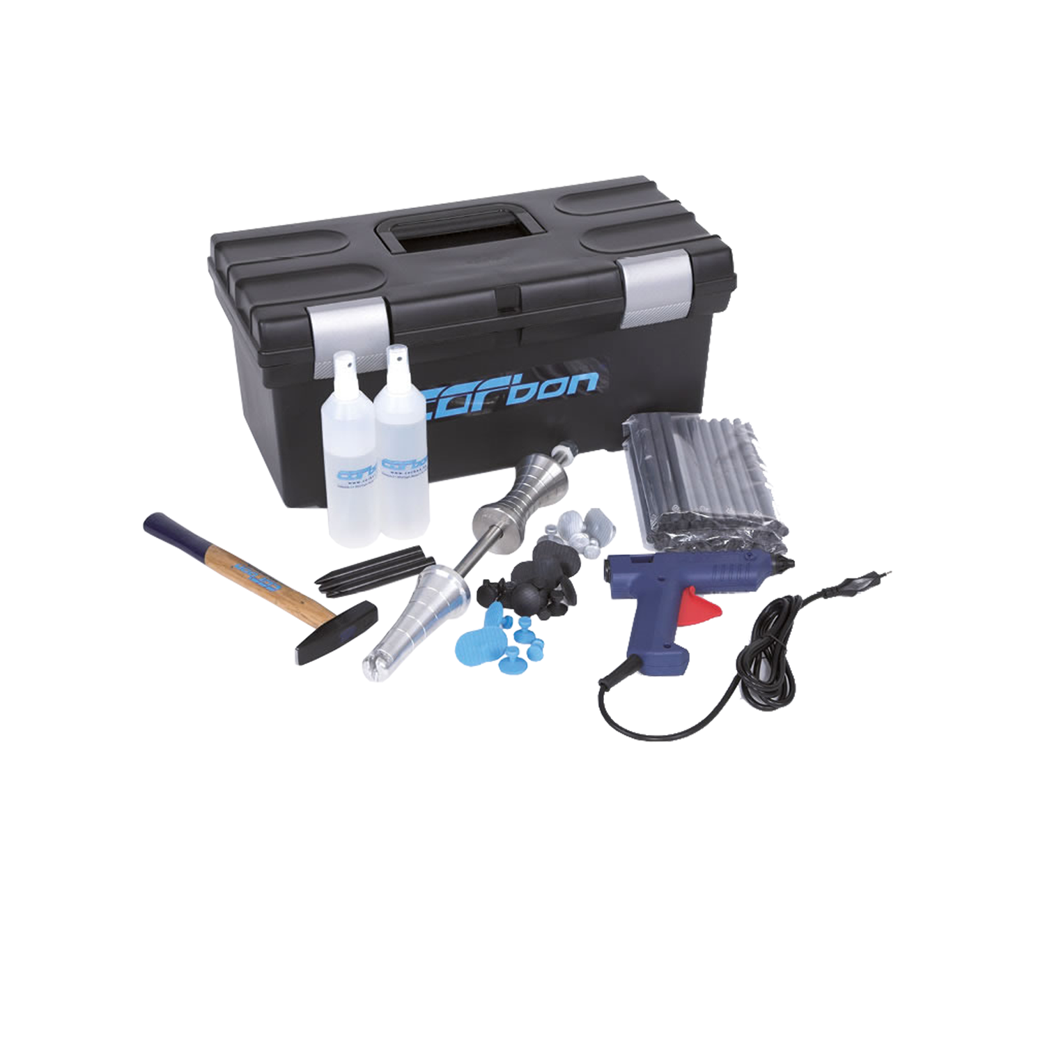 Avec la technique de collage, les bosses peuvent souvent être retirées plus rapidement et plus facilement que cela n'est possible avec des outils conventionnels particulièrement dans des endroits qui sont difficiles ou impossibles d'accès, comme en toiture et dans les paroies latérales. Le grand avantage de cette technique est un gain de temps sur le démontage.