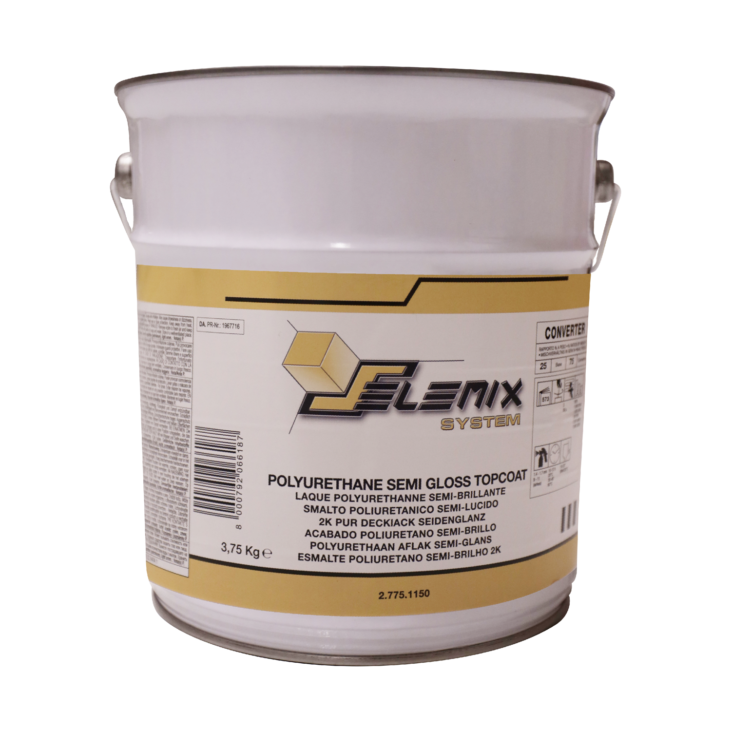 Numéro d’article C27423 Bezeichnung Vernis PUR acrylique couleur semigloss numéro fabricant 2.775.1150/E3.75K contenu 3.75kg marque Selemix ----Attr06---- type 7-512/-511 Verfügbarkeit